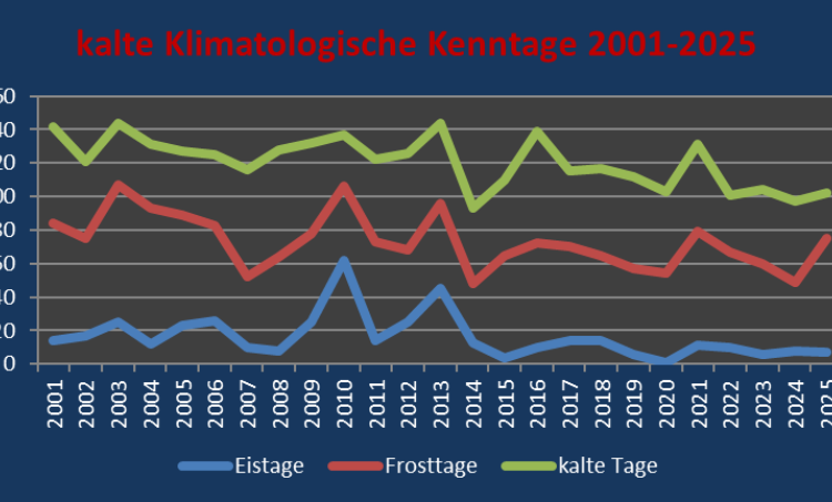 kalte Tage Tmax <10 Grad Frosttage Tmin <0,0 Grad Eistage Tmax <0,0 Grad