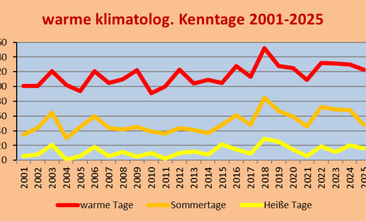 warme Tage Tmax =>20 Grad Sommertage Tmax =>25 Grad heiße Tage Tmax =>30 Grad