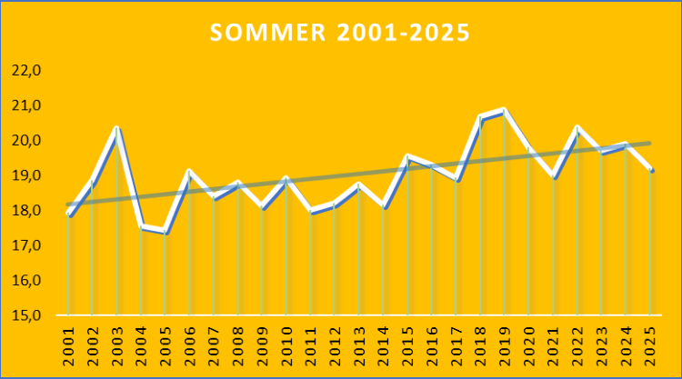 Durchschnittstemperaturwerte und Niederschlag Leipzig 2001 - 2025